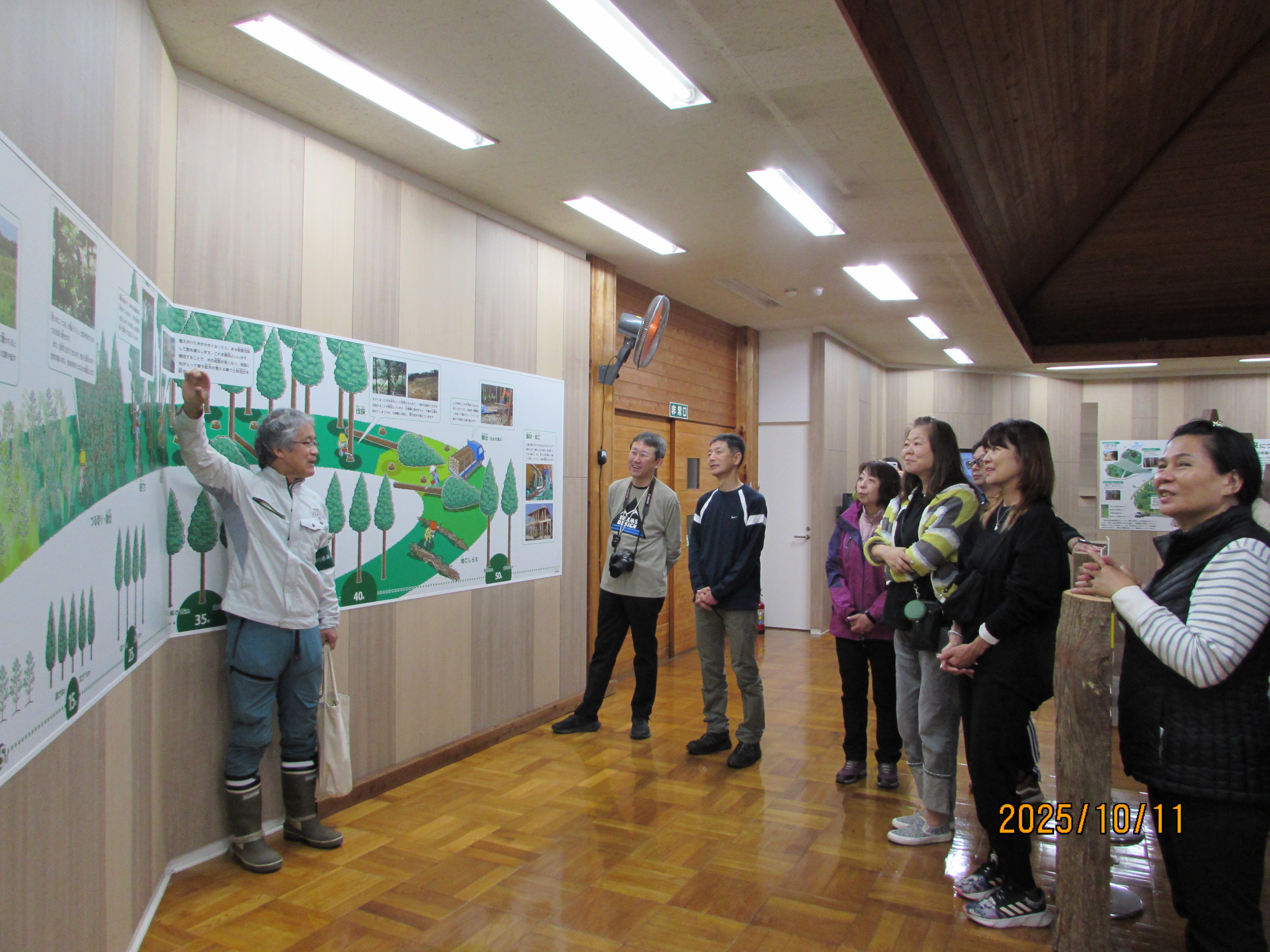 2025年10月11日、当社の第19回森林ボランティア活動として神奈川県南足柄市「神奈川県立21世紀の森」において枝打ちを予定しておりましたが、雨のためインストラクターの方による水資源と森林活動の関わりについてお話を伺ったあと、丸太切りの体験を行いました。
