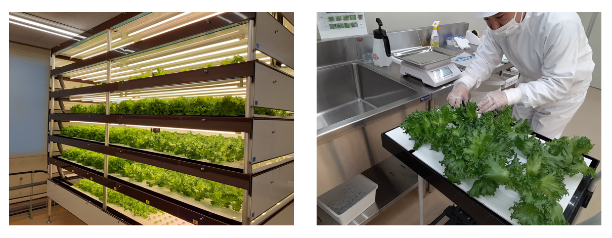 また、農福連携の一環として、2023年より同事業所内に完全人工光型野菜栽培装置を新たに導入し、障碍者社員による水耕レタスの栽培を開始しております。