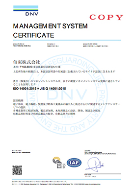 | 単独 | 伯東株式会社(本社、伊勢原事業所(伊勢原物流センター含む)、関西支店、名古屋支店) | 2001.03 | ACT※2 | UKAS |